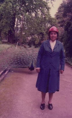 Buena, ella es mi abuelita Violeta...ahora tiene 84 años (!!) jiji...atrás pueden ver el pavo real, de los que les contaba...habian muchos merodeando el parque en ese tiempo...ahora no =/
